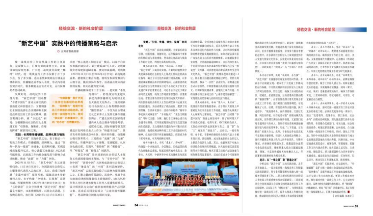 “新藝中國”實踐價值之處,在于驗證一個有效工作模式:傳播破圈,品牌聚力。通過“預(yù)熱—執(zhí)行—延展”全鏈條、長周期傳播,實現(xiàn)總閱讀量超55億次、核心話題互動量近1.4億次的傳播績效,以統(tǒng)戰(zhàn)工作的社會能見度與影響力成功破圈,推動“流量”向“力量”轉(zhuǎn)化。